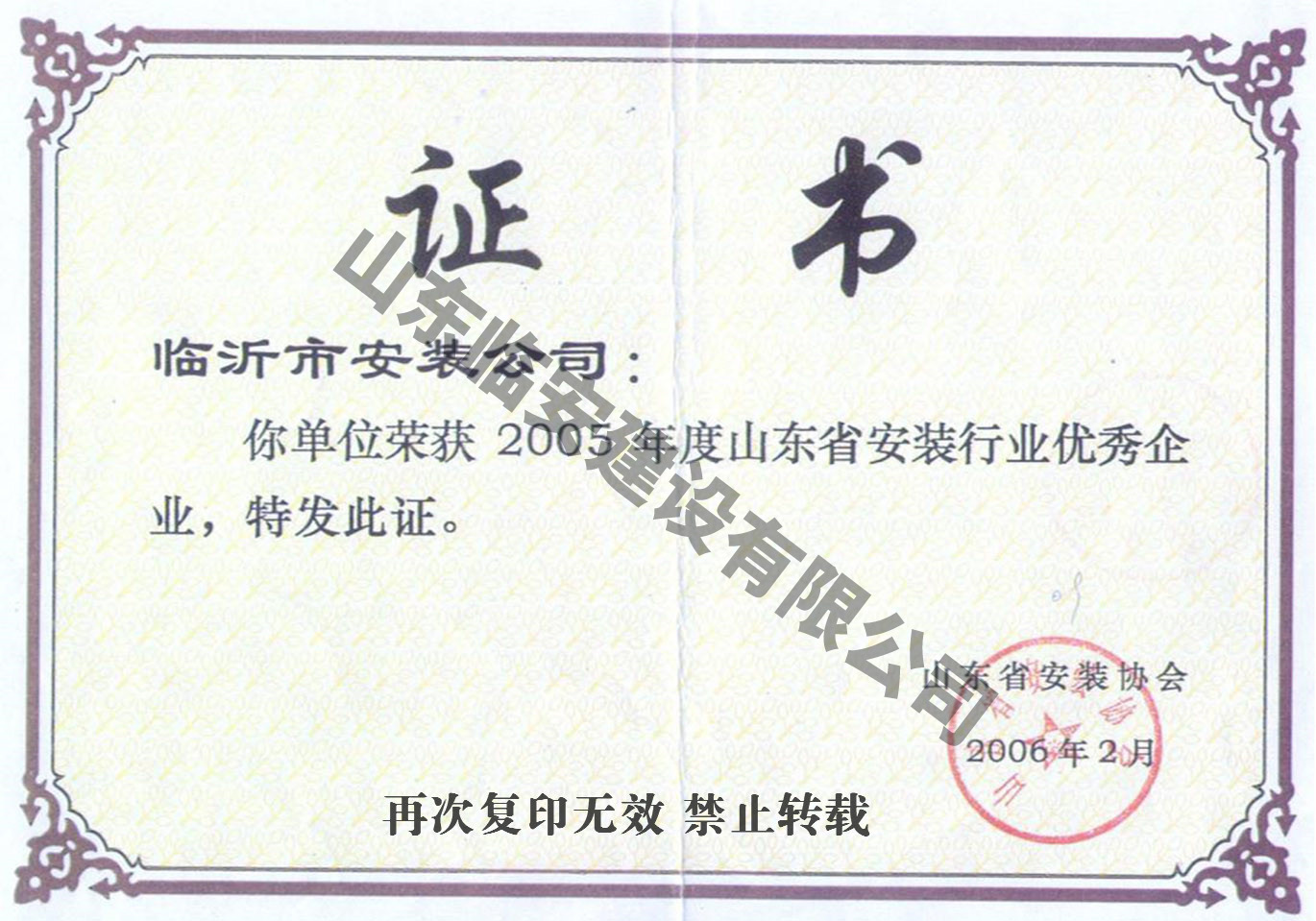 山東臨安建設有限公司(原名臨沂市安裝公司)始建于一九六六年,是由老國企改制的股份制企業,公司總部位于羅莊區通達路211號,現有職工1000余名,各類工程經濟技術人員816名,其中高中級職稱64名,初級職稱204人。主要從事機電工程施工總承包,電力施工總承包,石油化工施工總承包,建筑裝飾裝修施工總承包,鍋爐安裝、改造I級(參數不限),GB1、GB2(2)級、GC1級、GD1級壓力管道安裝,起重機械B級安裝,電力設施承裝、承試,并取得了GB/T19001-2008質量管理體系認證證書、GB/T28001-2011職業健康安全管理體系認證證書、GB/T24001-2004環境管理體系認證證書,資信等級“AAA”級。